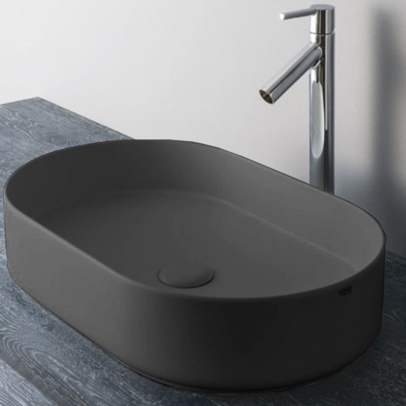 CIELO SHUI COMFORT SHCOLAO60 Раковина накладная без отверстия под смеситель, без слива-перелива. Все стороны покрыты эмалью. Размеры: 60x38x12,5h см. Цвет basalto.