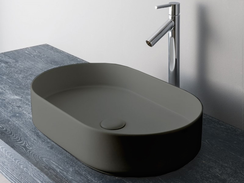 CIELO SHUI COMFORT SHCOLAO60 Раковина накладная без отверстия под смеситель, без слива-перелива. Все стороны покрыты эмалью. Размеры: 60x38x12,5h см. Цвет Cemento.