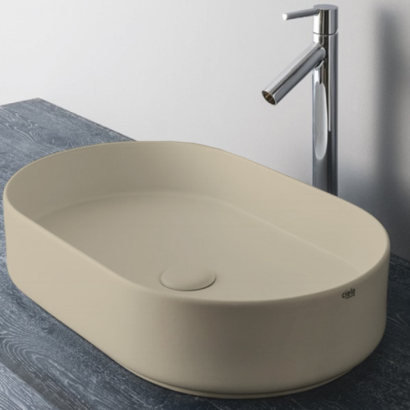 CIELO SHUI COMFORT SHCOLAO60 Раковина накладная без отверстия под смеситель, без слива-перелива. Все стороны покрыты эмалью. Размеры: 60x38x12,5h см. Цвет Lino.