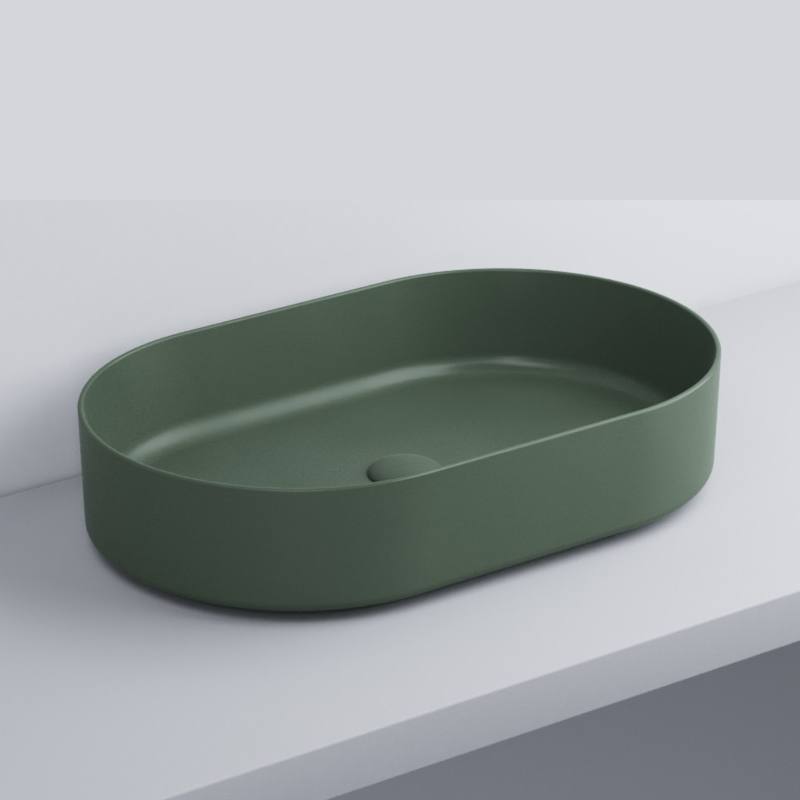 CIELO SHUI COMFORT SHCOLAO60 Раковина накладная без отверстия под смеситель, без слива-перелива. Все стороны покрыты эмалью. Размеры: 60x38x12,5h см. Цвет Muschio.