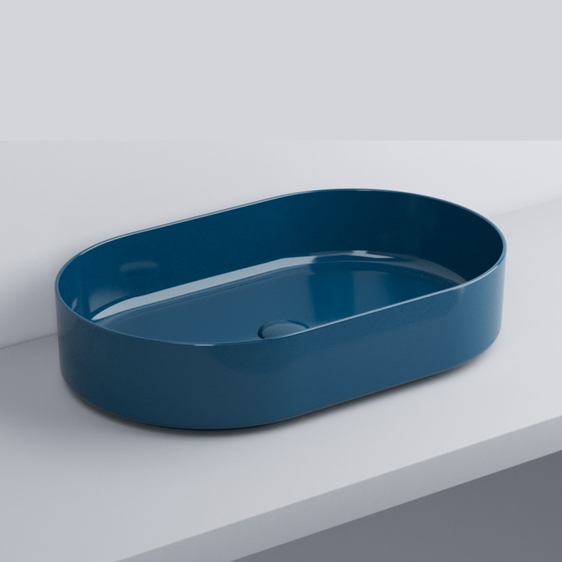 CIELO SHUI COMFORT SHCOLAO60 Раковина накладная без отверстия под смеситель, без слива-перелива. Все стороны покрыты эмалью. Размеры: 60x38x12,5h см. Цвет Oltremare.