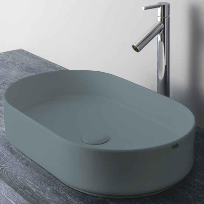 CIELO SHUI COMFORT SHCOLAO60 Раковина накладная без отверстия под смеситель, без слива-перелива. Все стороны покрыты эмалью. Размеры: 60x38x12,5h см. Цвет Polvere.