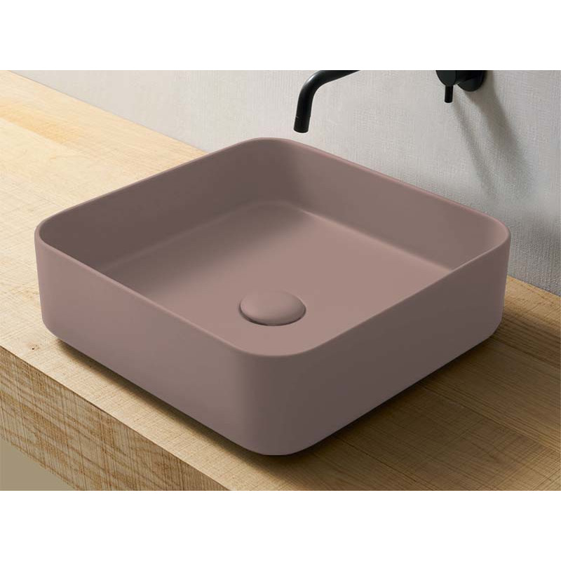 CIELO SHUI COMFORT SHCOLAQ40 Раковина накладная без отверстия под смеситель, без слива-перелива. Все стороны покрыты эмалью. Размеры: 40x40x12,5h см. Цвет Cipria.