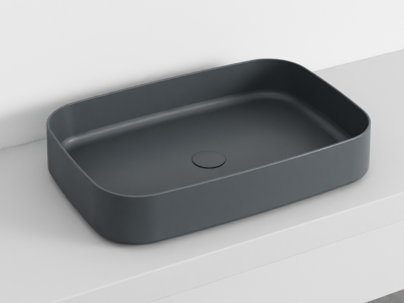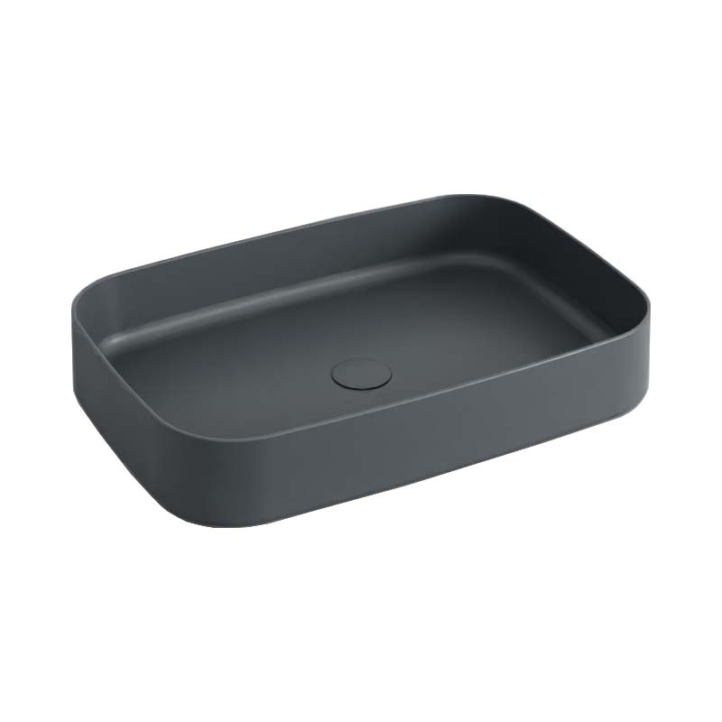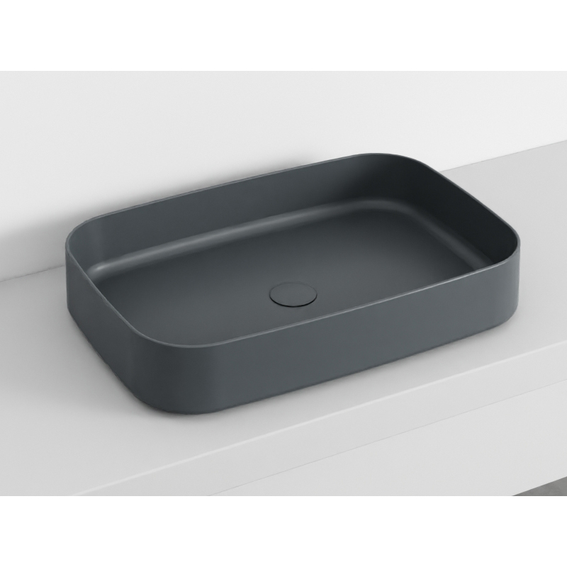 CIELO Shui Comfort SHCOLAR60 Раковина накладная прямоугольная, без отверстий под смеситель, без слива-перелива. Все стороны покрыты эмалью. Размер 60х40х12,5h см. Цвет basalto.