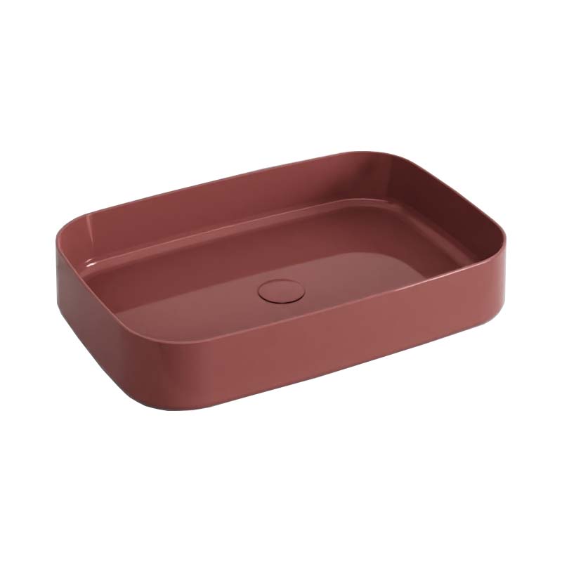 CIELO Shui Comfort SHCOLAR60 Раковина накладная прямоугольная, без отверстий под смеситель, без слива-перелива. Все стороны покрыты эмалью. Размер 60х40х12,5h см. Цвет Corallo.
