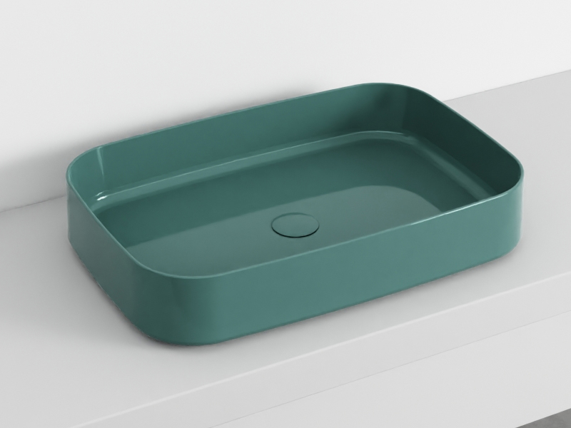 CIELO Shui Comfort SHCOLAR60 Раковина накладная прямоугольная, без отверстий под смеситель, без слива-перелива. Все стороны покрыты эмалью. Размер 60х40х12,5h см. Цвет Smeraldo.
