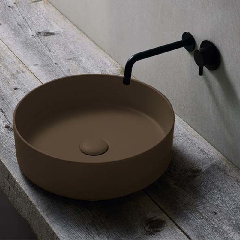 CIELO Shui Comfort SHCOLAT40 Раковина накладная без отверстия под смеситель, без слива-перелива. Все стороны покрыты эмалью. Размер 40х40х12,5h см. Цвет Cacao.