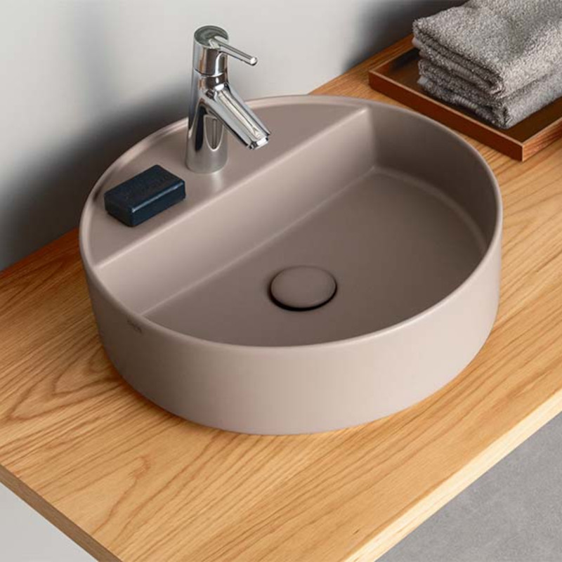 CIELO Shui Comfort SHCOLATF Раковина накладная с одним отверстием под смеситель, без слива-перелива. Все стороны покрыты эмалью. Размер: d45х13h см. Цвет avena.