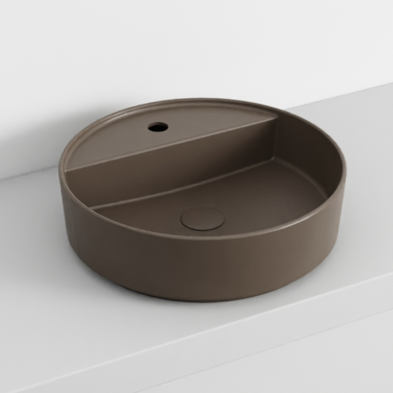 CIELO Shui Comfort SHCOLATF Раковина накладная с одним отверстием под смеситель, без слива-перелива. Все стороны покрыты эмалью. Размер: d45х13h см. Цвет Cacao.