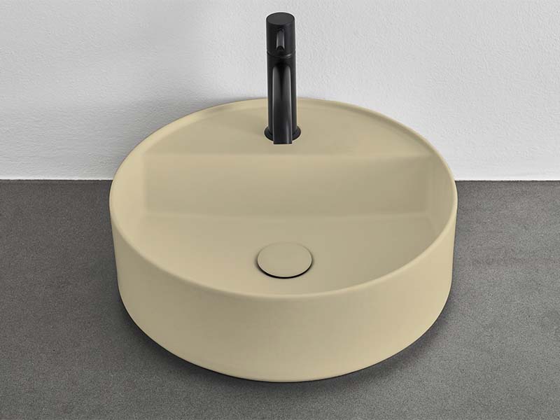 CIELO Shui Comfort SHCOLATF Раковина накладная с одним отверстием под смеситель, без слива-перелива. Все стороны покрыты эмалью. Размер: d45х13h см. Цвет Canapa.