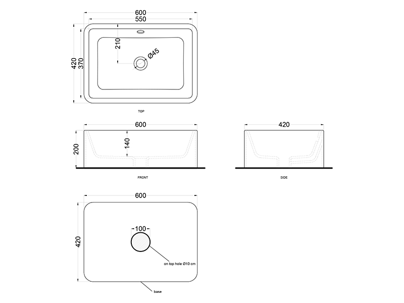 SHUI Раковина накладная без отв.под смеситель, цвет Polvere