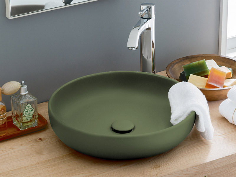 SHUI Раковина накладная круглая, без отверстий для смесителя,с керамической накладкой,цвет Agave