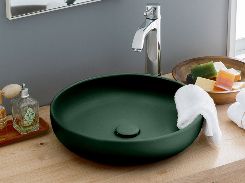 SHUI Раковина накладная круглая, без отверстий для смесителя,с керамической накладкой,цвет Muschio