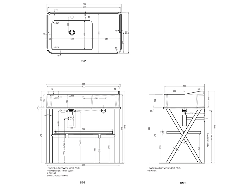 SIWA Раковина накладная или подвесная с 1 отв. под смеситель, без перелива ,цвет Lavagna