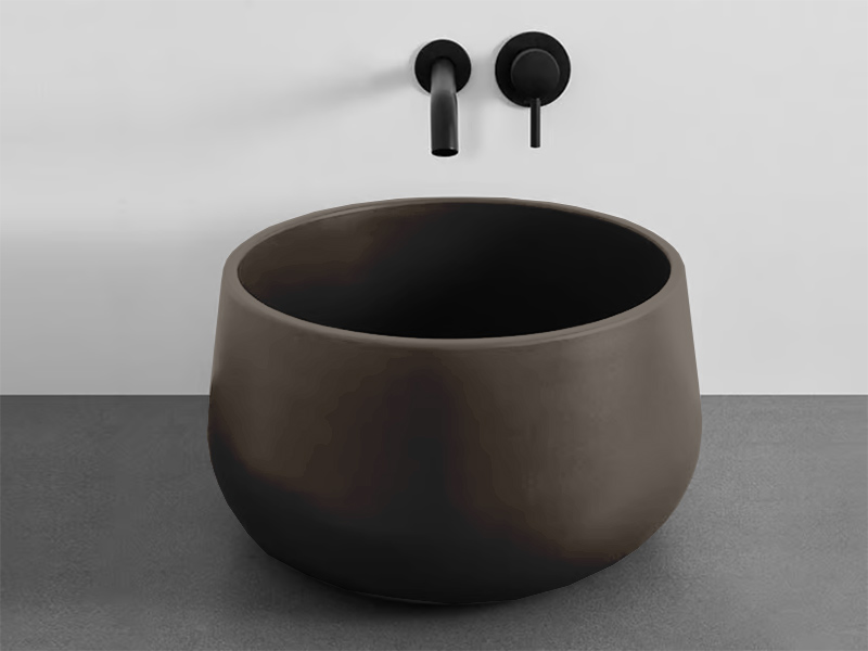 CIELO TINA Раковина - чаша накладная без отверстия под смеситель, без слива- перелива. Все стороны покрыты эмалью. Рекомендуется установка на столешницу. Размеры: ø45 x 26 h см. Цвет Cacao.