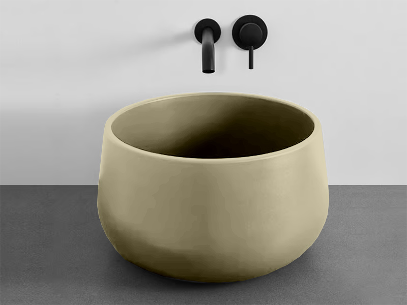 CIELO TINA Раковина - чаша накладная без отверстия под смеситель, без слива- перелива. Все стороны покрыты эмалью. Рекомендуется установка на столешницу. Размеры: ø45 x 26 h см. Цвет Canapa.
