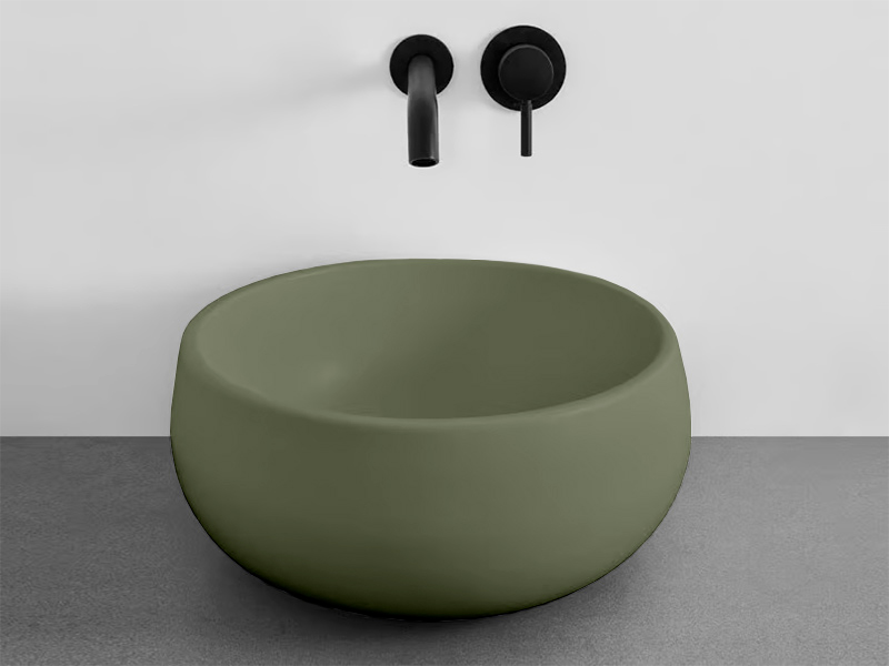 CIELO TINO MINI BATO30 Раковина - чаша накладная без отверстия под смеситель, без слива- перелива. Все стороны покрыты эмалью. Рекомендуется установка на столешницу. Размеры: ø30 x 14,5h см. Цвет Agave.