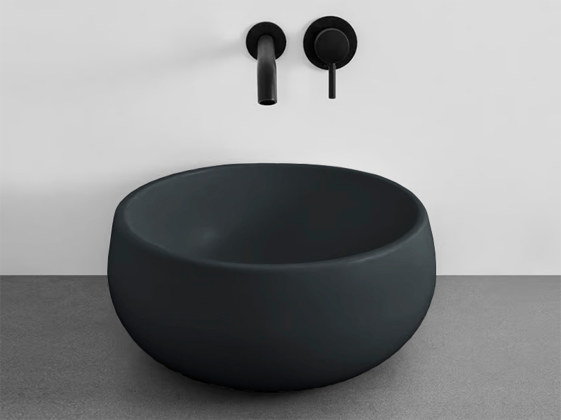 CIELO TINO MINI BATO30 Раковина - чаша накладная без отверстия под смеситель, без слива- перелива. Все стороны покрыты эмалью. Рекомендуется установка на столешницу. Размеры: ø30 x 14,5h см. Цвет Basalto.