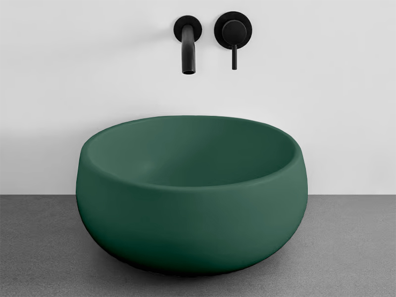 CIELO TINO MINI BATO30 Раковина - чаша накладная без отверстия под смеситель, без слива- перелива. Все стороны покрыты эмалью. Рекомендуется установка на столешницу. Размеры: ø30 x 14,5h см. Цвет Muschio.