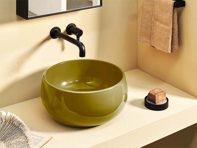 CIELO TINA BATO Раковина - чаша накладная без отверстия под смеситель, без слива- перелива. Все стороны покрыты эмалью. Рекомендуется установка на столешницу. Размеры: ø43 x 19 h см. Цвет Anemone.