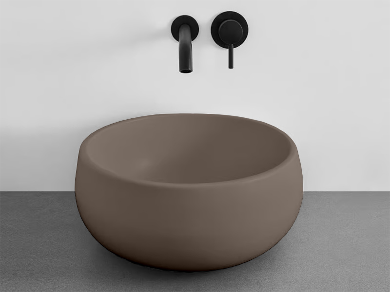 CIELO TINA BATO Раковина - чаша накладная без отверстия под смеситель, без слива- перелива. Все стороны покрыты эмалью. Рекомендуется установка на столешницу. Размеры: ø43 x 19 h см. Цвет Arenaria.