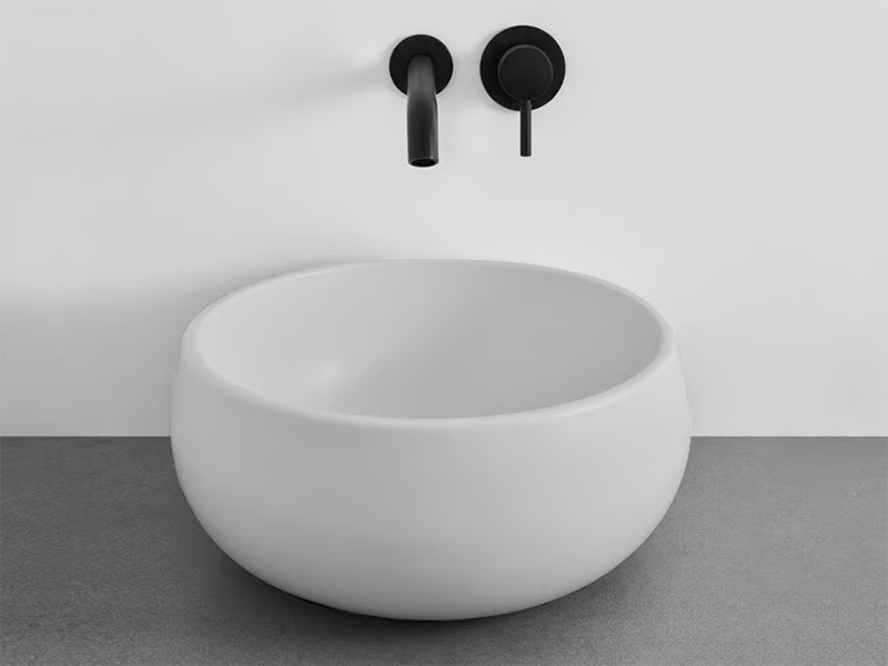 CIELO TINA BATO Раковина - чаша накладная без отверстия под смеситель, без слива- перелива. Все стороны покрыты эмалью. Рекомендуется установка на столешницу. Размеры: ø43 x 19 h см. Цвет Talco.