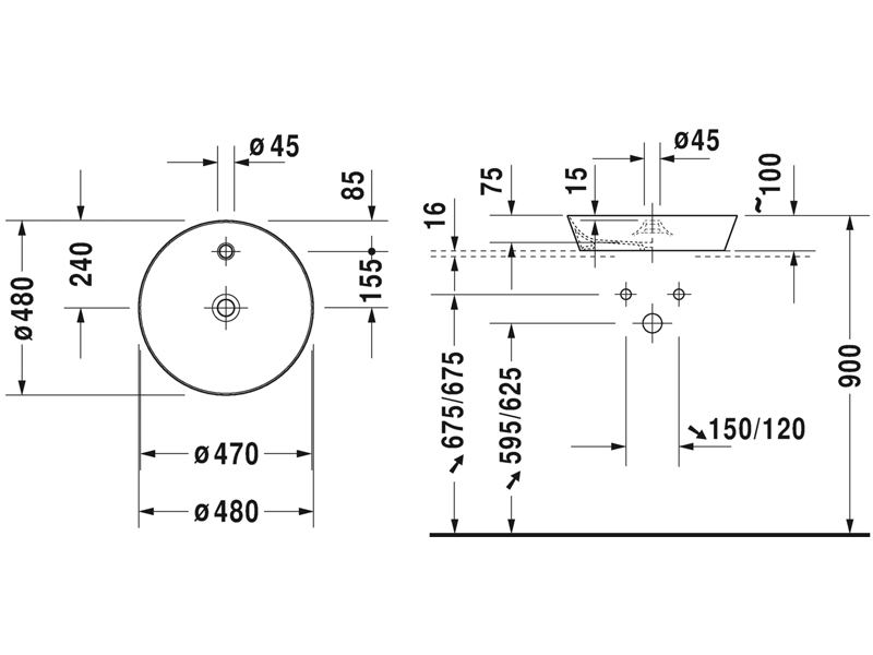 Cape Cod Раковина с переливом, с плоскостью под смеситель, 1 отверстие для смесителя, диаметр 48 см, цвет белый