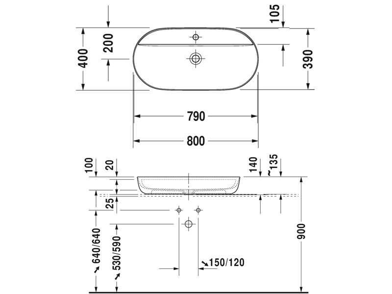 LUV Раковина накладная 80x40см бел. c 1 отв. под смеситель