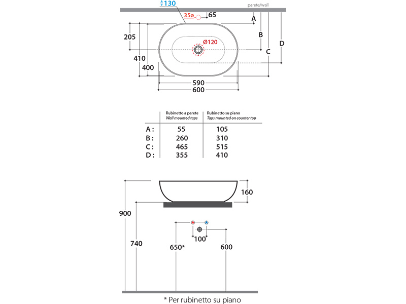 | Установка | На столешницу, Накладная |