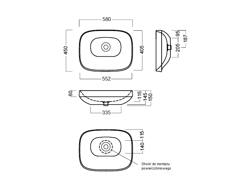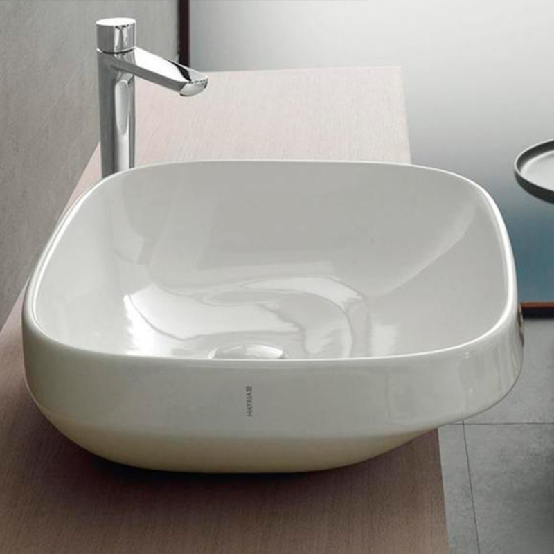Раковина накладная HATRIA ABITO YXXA01, без отверстий для смесителя, без перелива, размер 58х45x15 см, цвет белый. Варианты цветовых решений представлены на сайте.