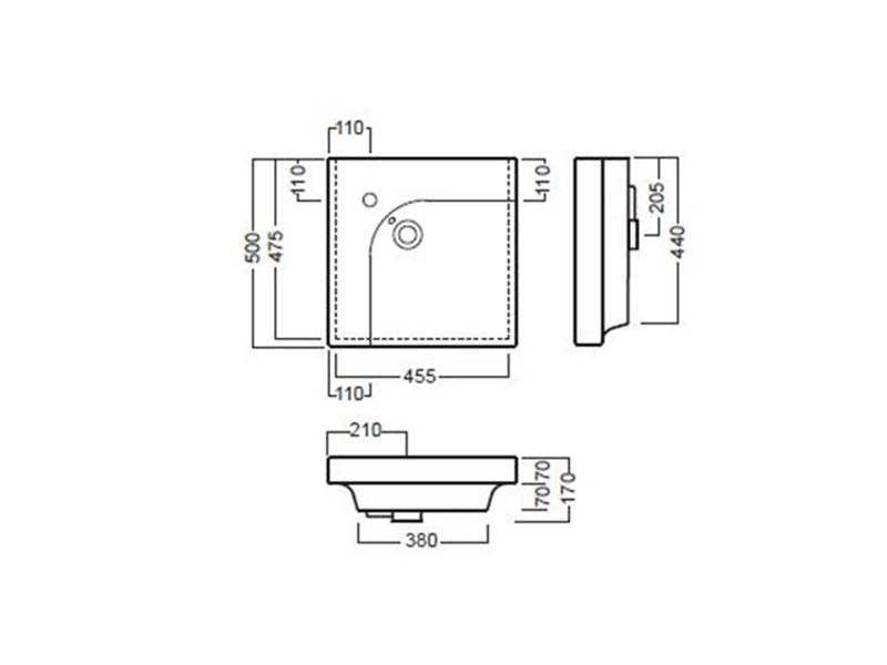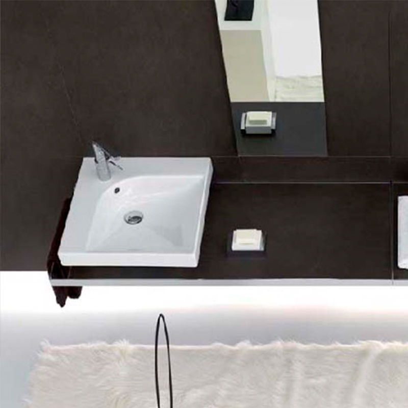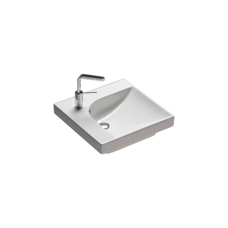 Раковина накладная HATRIA GRANDANGOLO YXER01 с одним отверстием для смесителя, чаша справа, для установки на столешницу, размер 50х50 см, цвет белый. Донный клапан и сифон приобретаются отдельно. Крепление в комплекте.