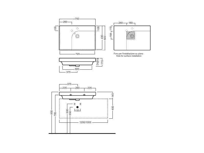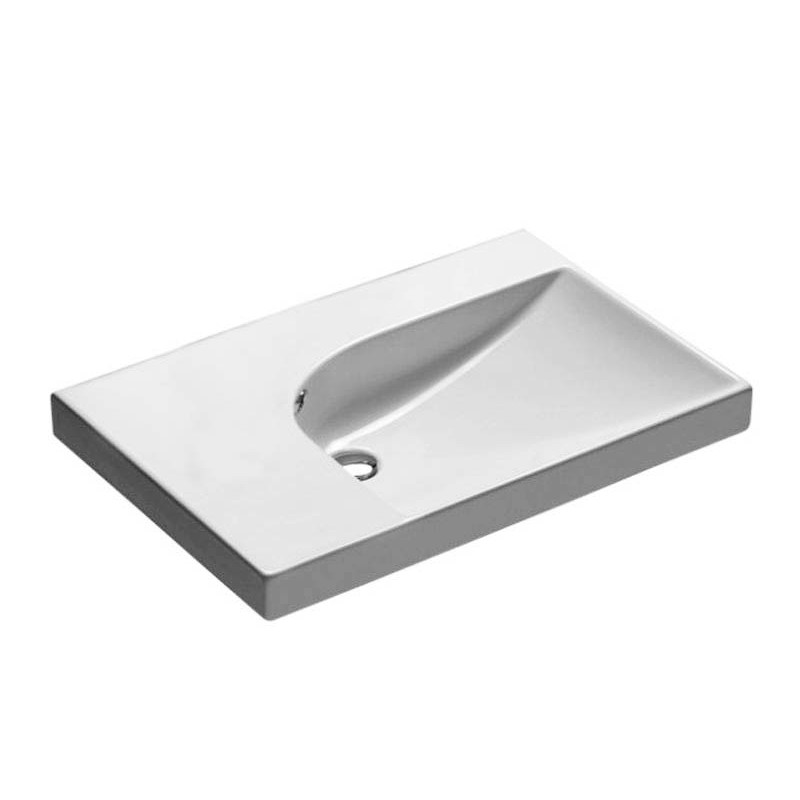 Раковина накладная HATRIA GRANDANGOLO YXET01, с одним отверстием для смесителя, еще одно намеченное отверстие, чаша справа, для установки на столешницу или тумбу, размер 75х50 см, цвет белый. Донный клапан и сифон приобретаются отдельно. Крепление в комплекте.