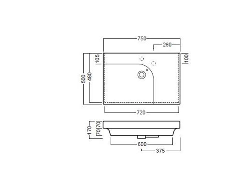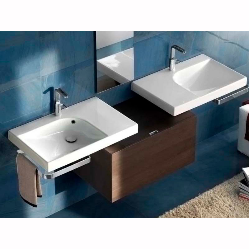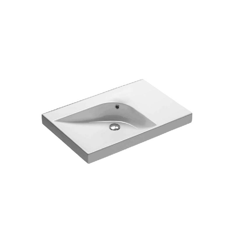 Раковина накладная HATRIA GRANDANGOLO YXNS01, без отверстия для смесителя, два намеченных отверстия, чаша слева, для установки на столешницу, размер 75х50 см, цвет белый. Донный клапан и сифон приобретаются отдельно. Крепление в комплекте.