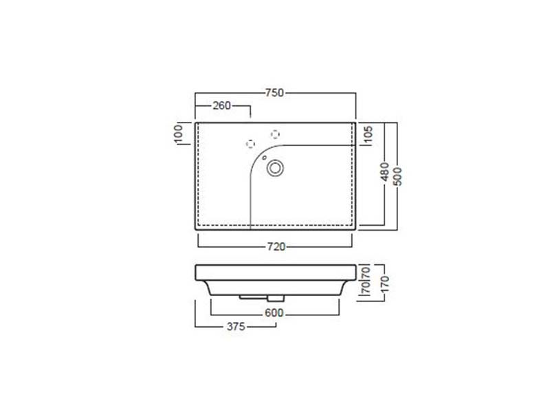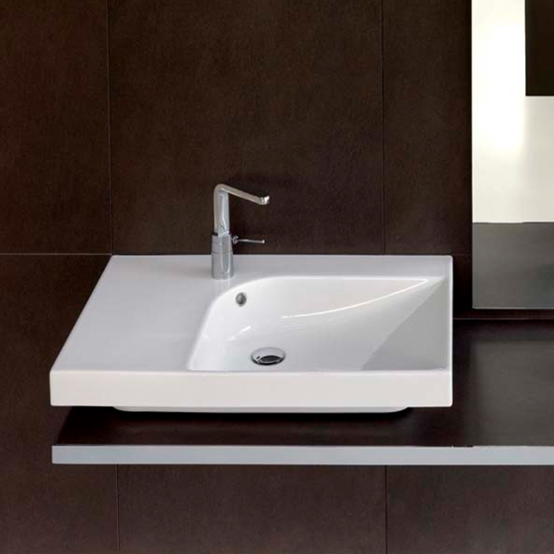 Раковина накладная HATRIA GRANDANGOLO YXNT01, без отверстия для смесителя, два намеченных отверстия, чаша справа, для установки на столешницу, размер 75х50 см, цвет белый. Донный клапан и сифон приобретаются отдельно. Крепление в комплекте.