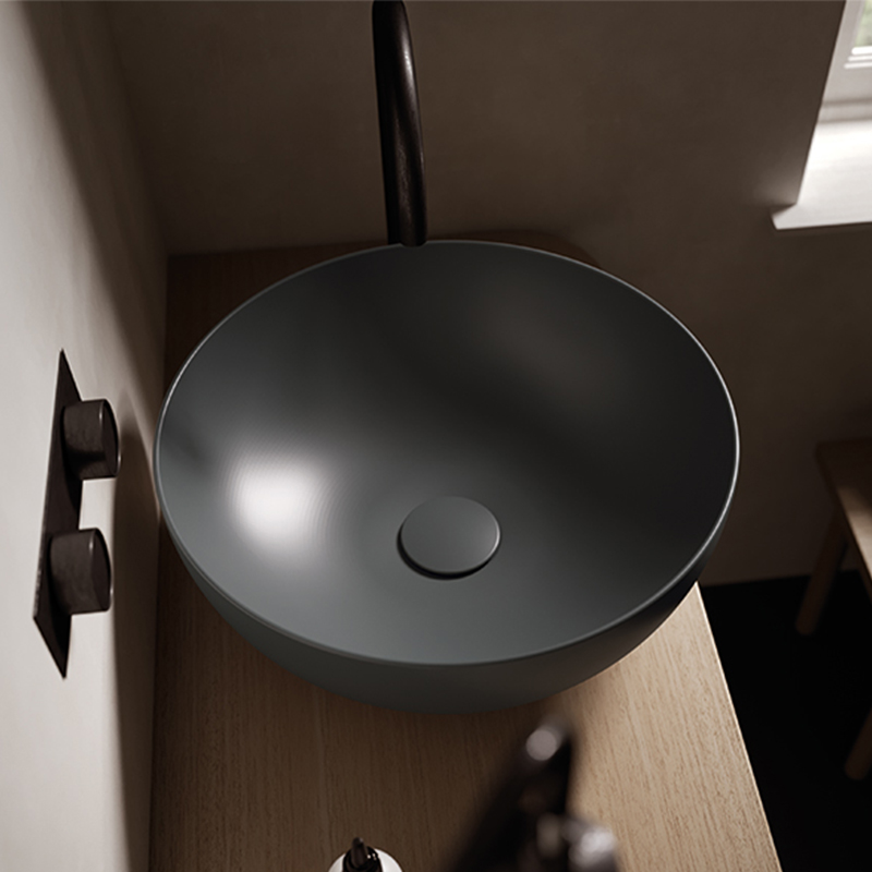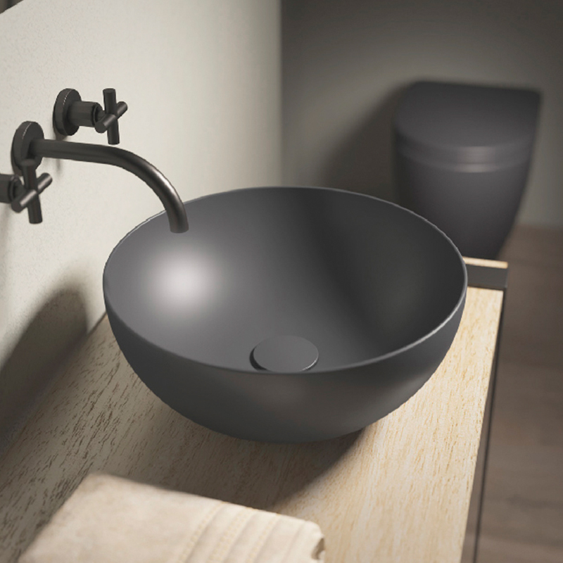 Раковина накладная HATRIA HAPPY HOUR A0Y1VF08, без отверстий для смесителя, без перелива, диаметр 40 см, цвет антрацит.
