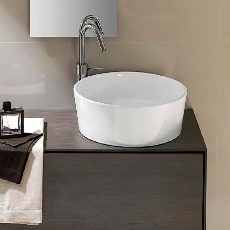 Раковина накладная HATRIA HAPPY HOUR A0Y1VG25 с тонкими стенками, без отверстий для смесителя, без перелива, диаметр 44 см, цвет белый матовый.