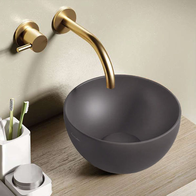 Раковина накладная HATRIA HAPPY HOUR A0Y5A508, без отверстий для смесителя, без перелива, диаметр 25 см, цвет антрацит. Донный клапан и сифон приобретаются отдельно.