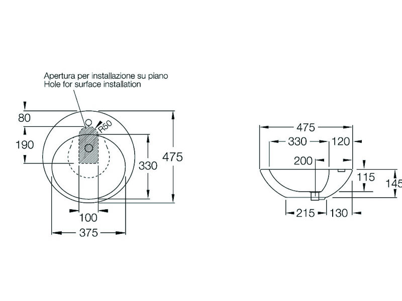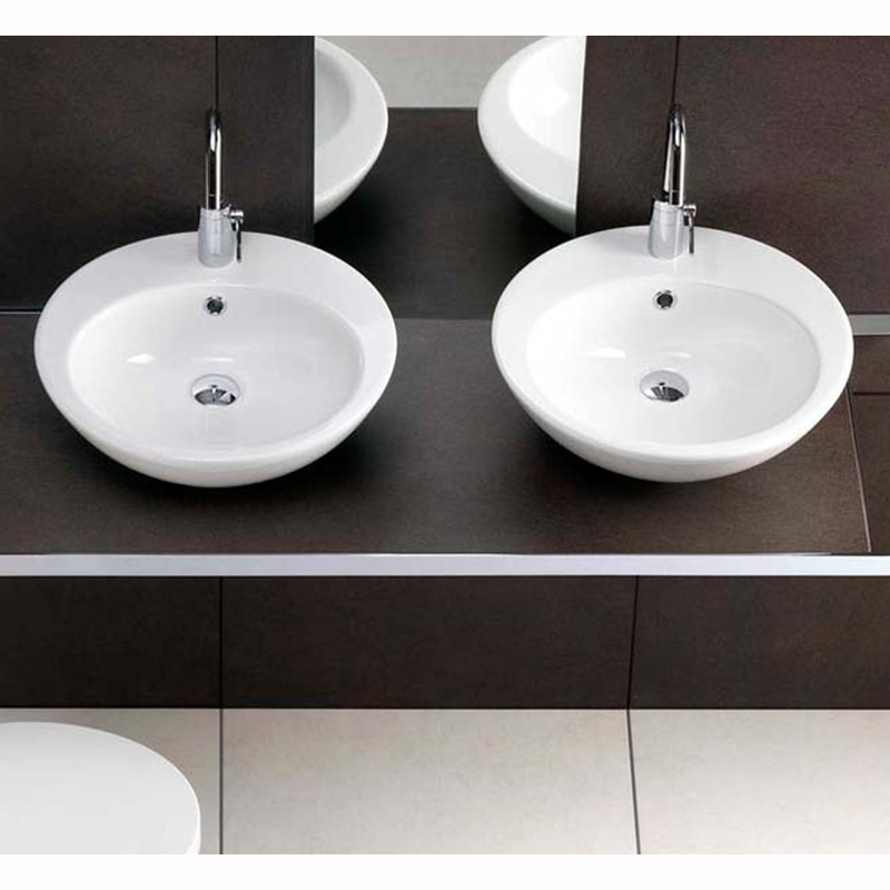 Раковина накладная HATRIA HAPPY HOUR Y0M601, с одним отверстием под смеситель, с переливом, размер 47.5х47.5х14.5 см, цвет белый. Донный клапан и сифон приобретаются отдельно.