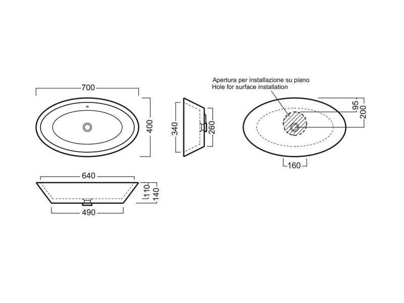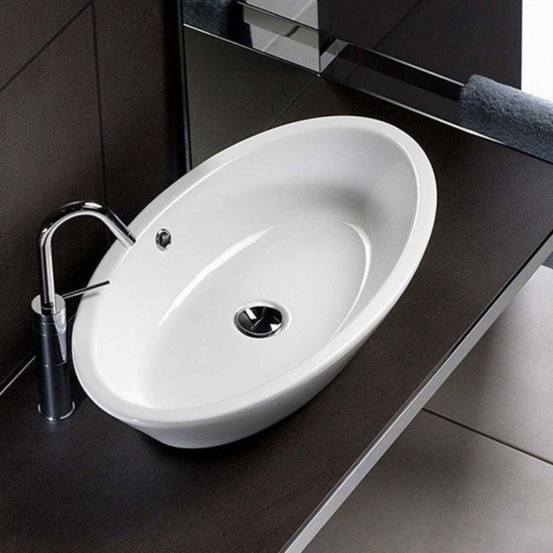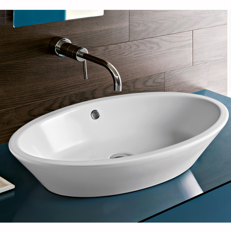 Раковина накладная HATRIA HAPPY HOUR Y0M901, с переливом, без отверстий для смесителя, размер 70х40x14 см, цвет белый. Донный клапан и сифон приобретаются отдельно.