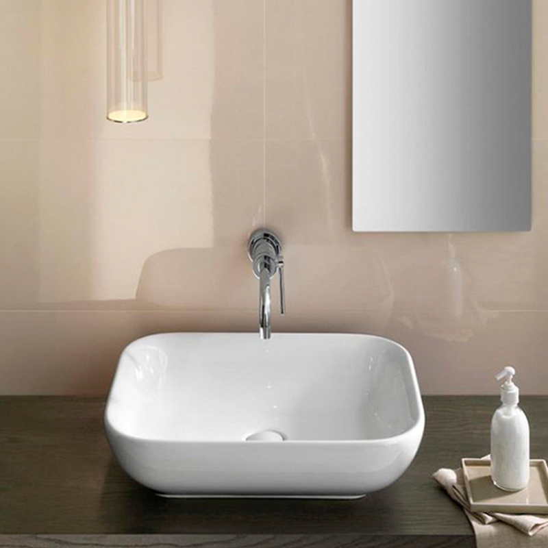Раковина накладная HATRIA HAPPY HOUR Y0QQ01, размер 55х40.5x16 см, цвет белый. Раковина без отверстий под смеситель; без отверстия перелива. Устанавливается на столешницы, подстолья и мебель. Донный клапан и сифон приобретаются отдельно.