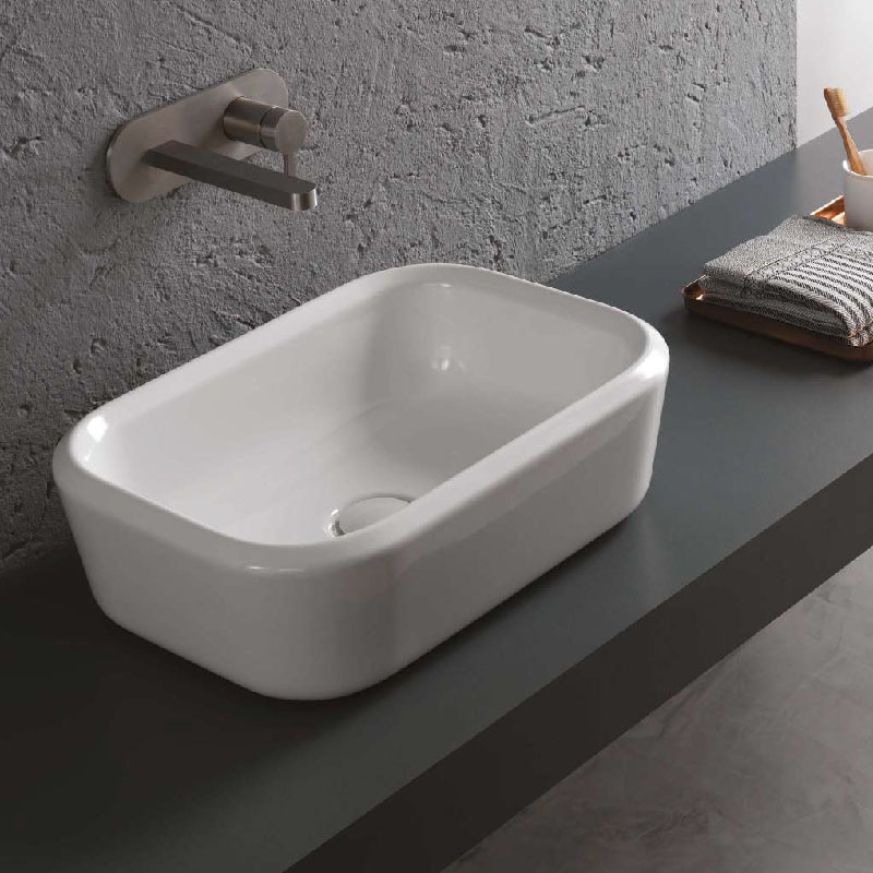 Раковина накладная HATRIA PENCIL Y1GF01, без отверстий для смесителя, без перелива, размер 55x38 см, цвет белый.