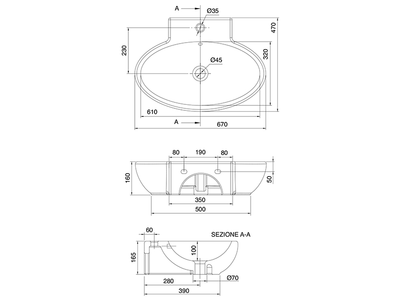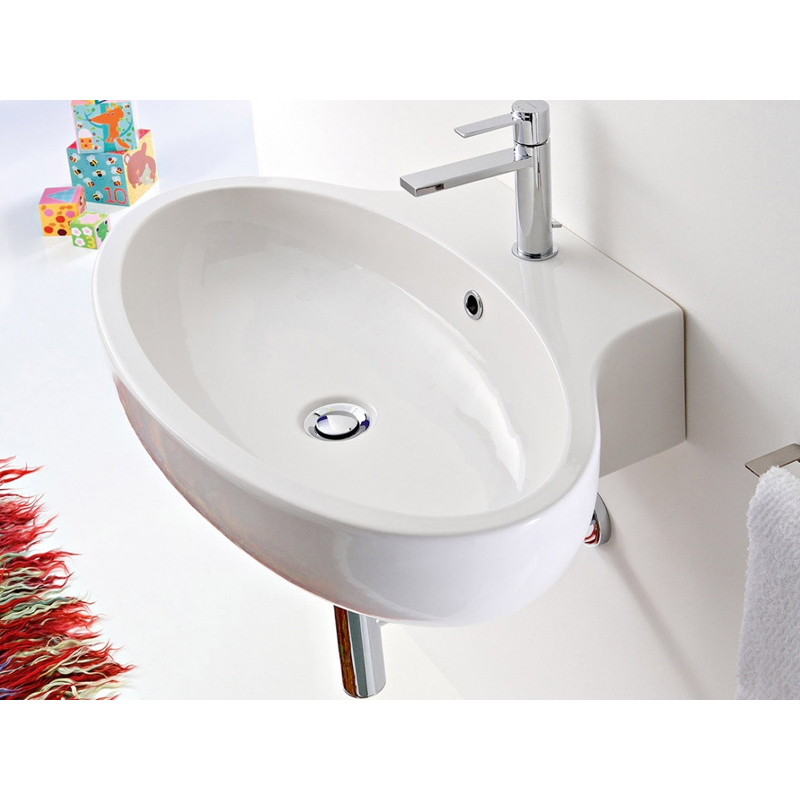 SCARABEO PLANET 8109 Раковина накладная или подвесная с одним отверстием под смеситель, с сливом - переливом. Размеры: 67x47x16,5h см. Настенные крепления входят в комплект. Цвет White.