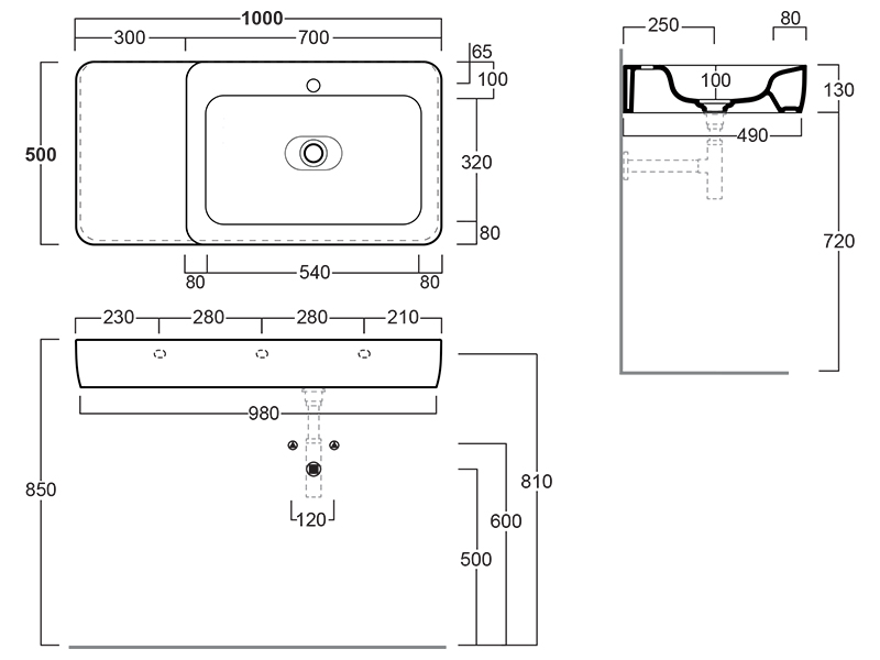 С размерами 100х50 см, она обеспечивает достаточно пространства для использования. Благодаря чаше, расположенной справа, у вас будет удобный доступ к воде и другим необходимым предметам.