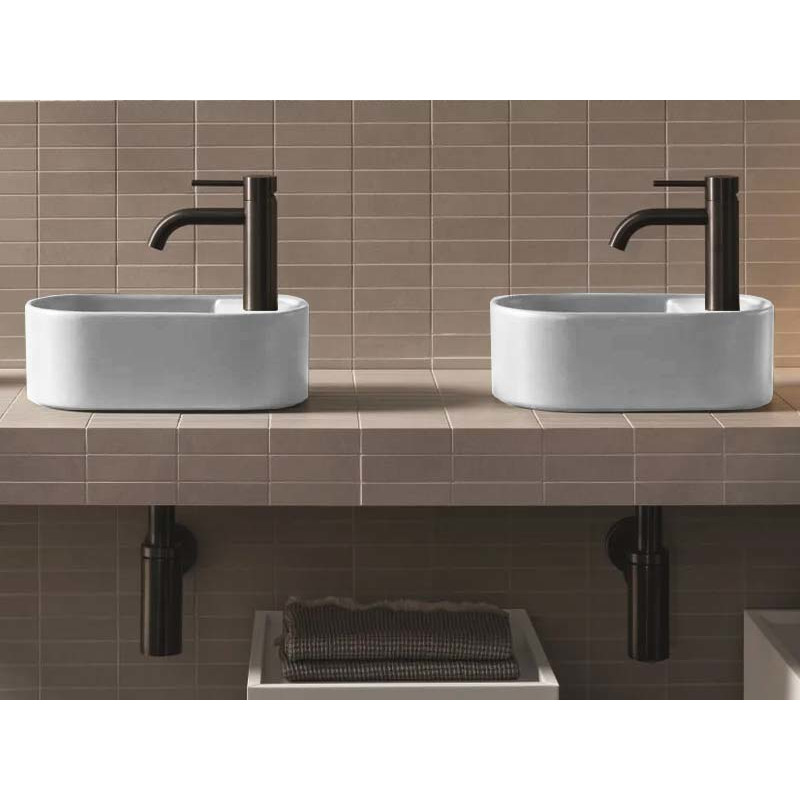 CIELO Les Petites Раковина накладная или подвесная с одним отверстием под смеситель справа, без слива-перелива. Все стороны покрыты эмалью. При установке на столешницу рекомендуется запросить опцию “RETTIFICA”. В комплекте с крепежами. Размеры: 46x30x16h см. Цвет Gloss white.