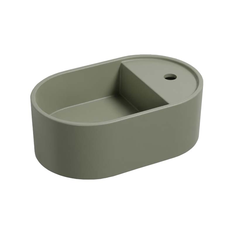 CIELO Les Petites Раковина накладная или подвесная с одним отверстием под смеситель справа, без слива-перелива. Все стороны покрыты эмалью. При установке на столешницу рекомендуется запросить опцию “RETTIFICA”. В комплекте с крепежами. Размеры: 46x30x16h см. Цвет Agave.