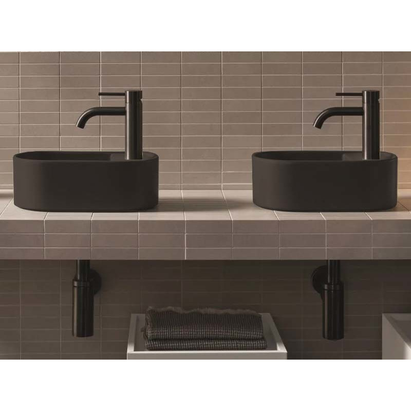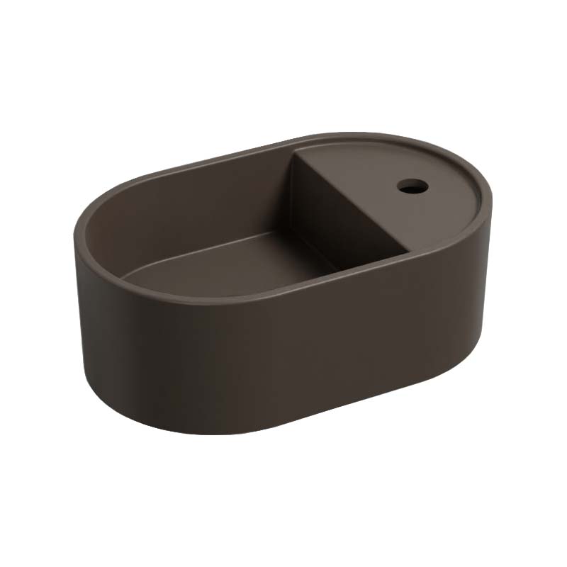 CIELO Les Petites Раковина накладная или подвесная с одним отверстием под смеситель справа, без слива-перелива. Все стороны покрыты эмалью. При установке на столешницу рекомендуется запросить опцию “RETTIFICA”. В комплекте с крепежами. Размеры: 46x30x16h см. Цвет Cacao.