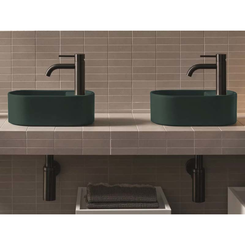 CIELO Les Petites Раковина накладная или подвесная с одним отверстием под смеситель справа, без слива-перелива. Все стороны покрыты эмалью. При установке на столешницу рекомендуется запросить опцию “RETTIFICA”. В комплекте с крепежами. Размеры: 46x30x16h см. Цвет Muschio.