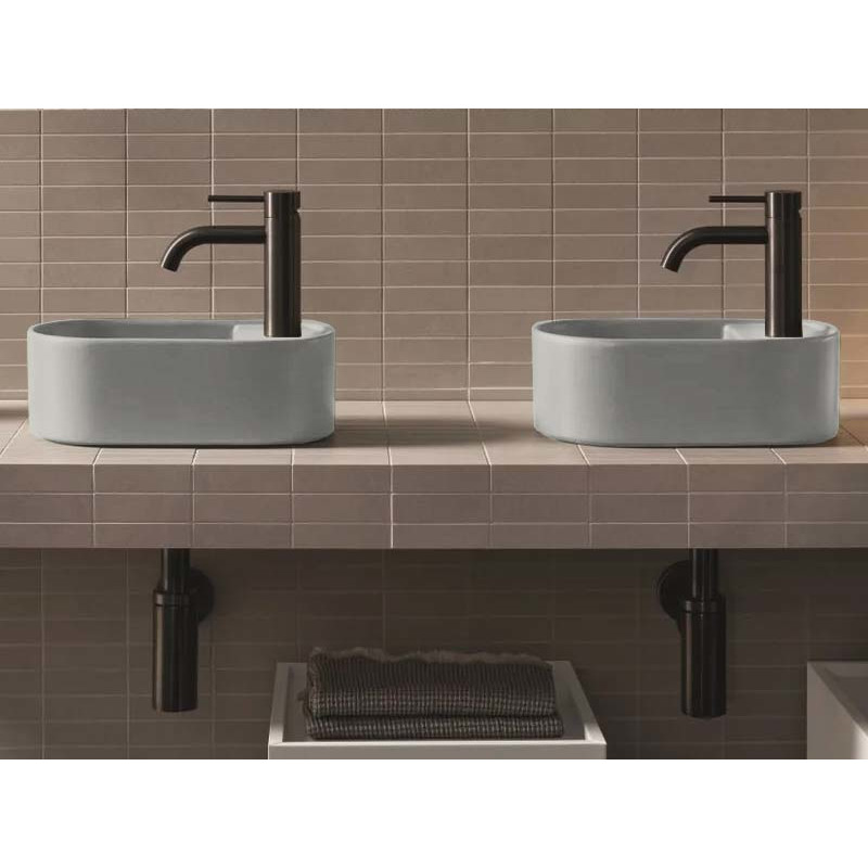 CIELO Les Petites Раковина накладная или подвесная с одним отверстием под смеситель справа, без слива-перелива. Все стороны покрыты эмалью. При установке на столешницу рекомендуется запросить опцию “RETTIFICA”. В комплекте с крепежами. Размеры: 46x30x16h см. Цвет Pomice.