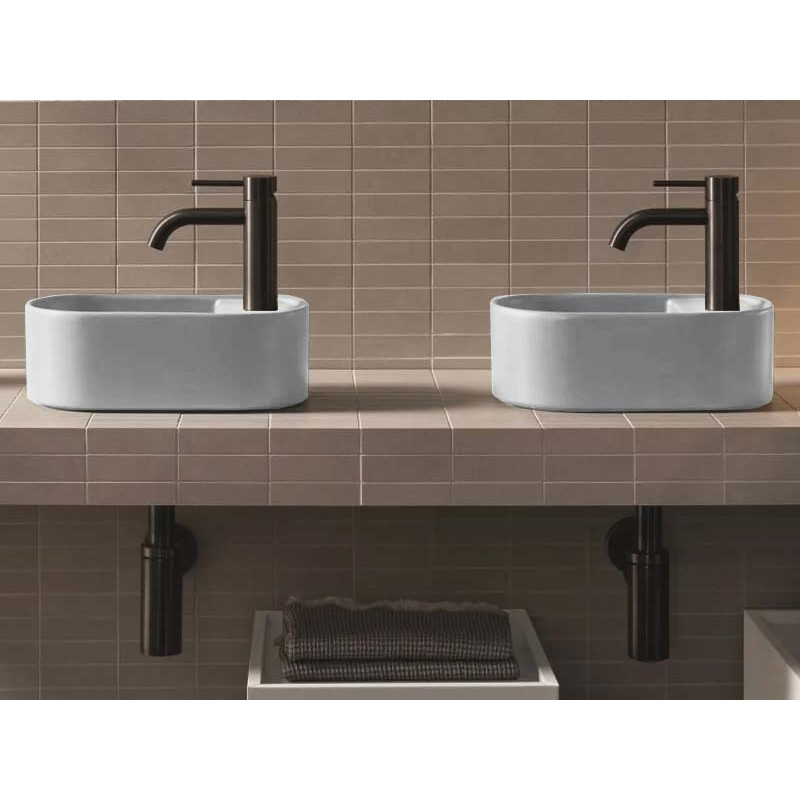CIELO Les Petites Раковина накладная или подвесная с одним отверстием под смеситель справа, без слива-перелива. Все стороны покрыты эмалью. При установке на столешницу рекомендуется запросить опцию “RETTIFICA”. В комплекте с крепежами. Размеры: 46x30x16h см. Цвет Gloss white.