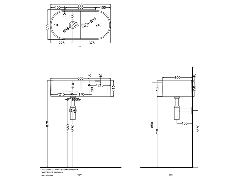 CIELO Les Petites Раковина накладная или подвесная с одним отверстием под смеситель справа, без слива-перелива. Одна сторона не покрыта эмалью. При установке на столешницу рекомендуется запросить опцию “RETTIFICA”. В комплекте с крепежами. Размеры: 60x30x16h см. Цвет Canapa.